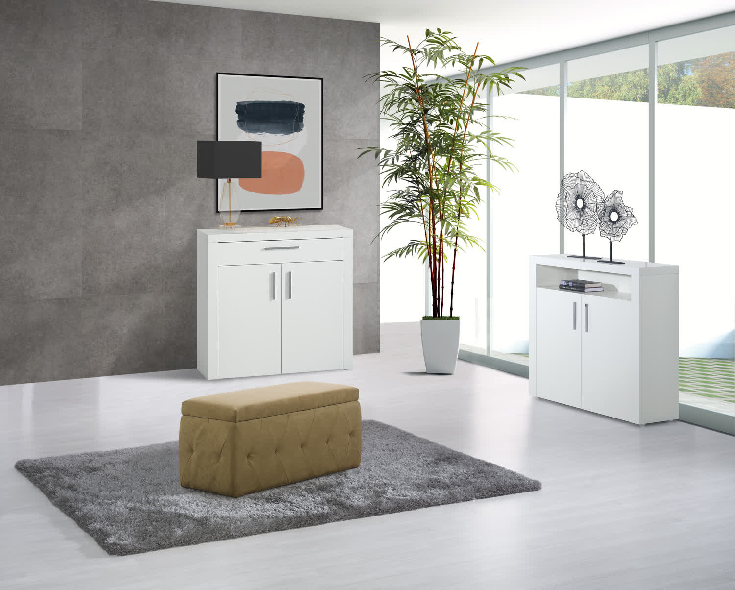 Banqueta de linhas elegantes, com capitonê nas laterais. Complementa a decoração da sua sala de estar, hall de entrada ou quarto, oferecendo-lhe ainda espaço extra de arrumação no baú com tampa. Disponível em tecido.