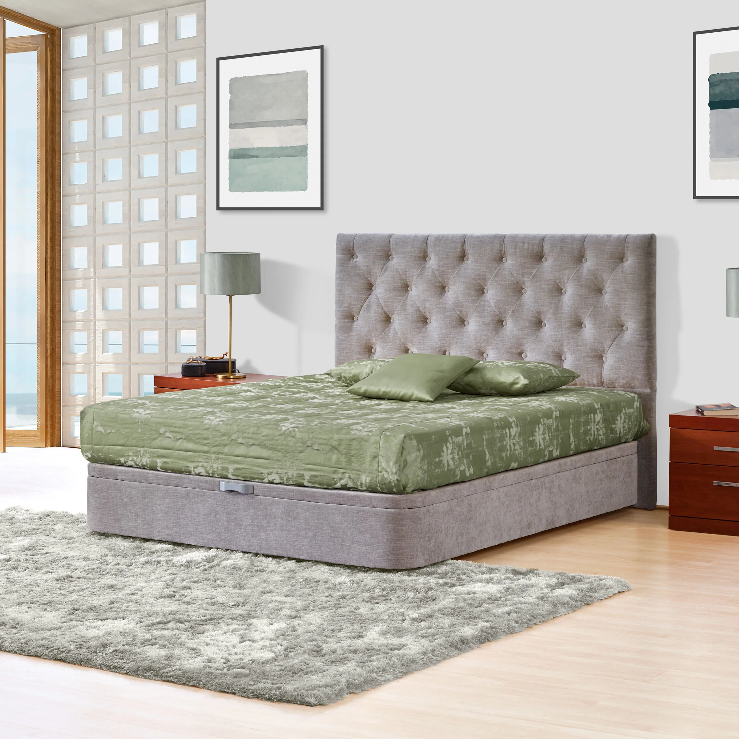 - Cabeceira estofada, com efeito clássico capitonê.