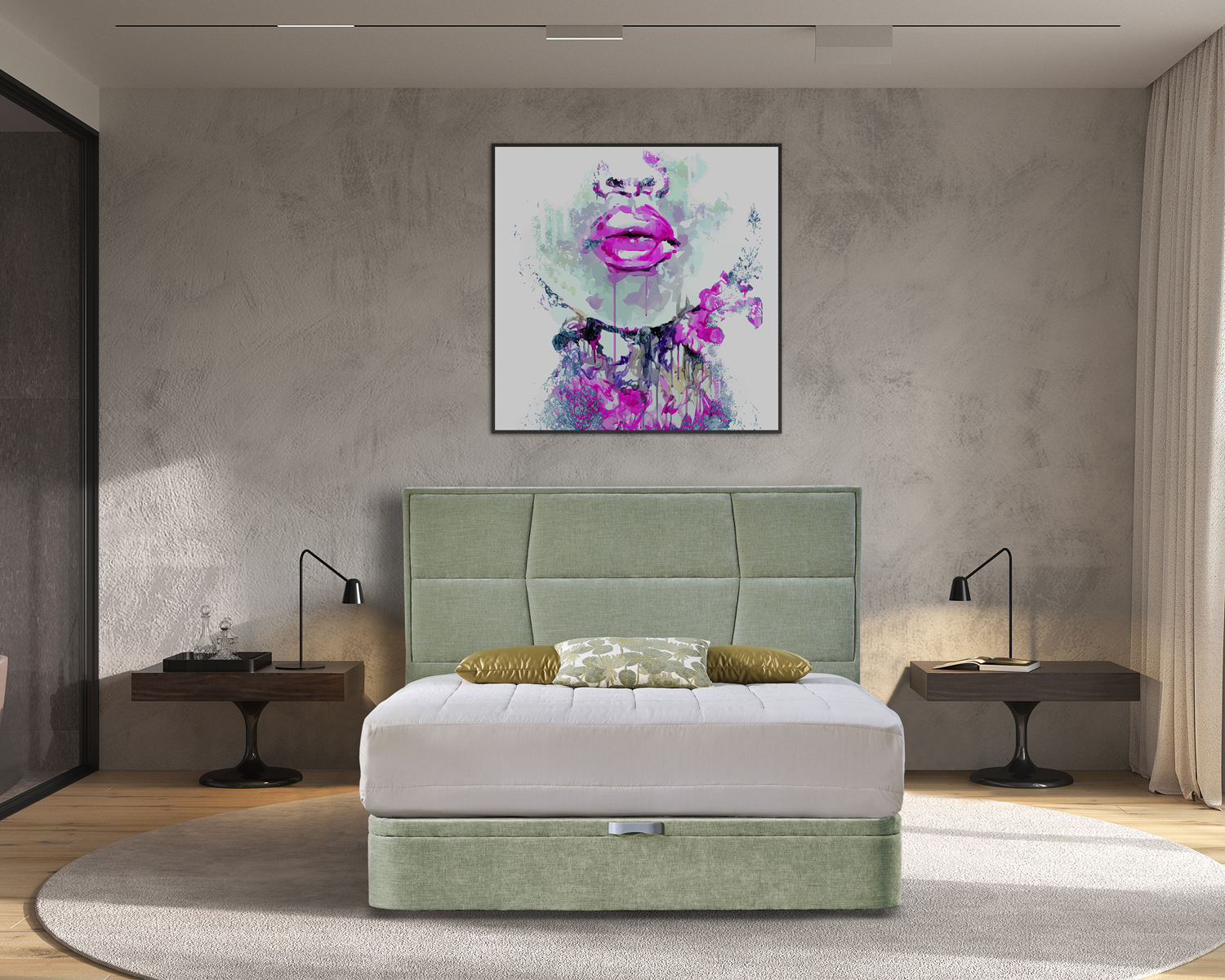 Marcada pela originalidade, a cabeceira Edna apresenta uma moldura com costura de desenho geométrico que resulta em gomos de diferentes tamanhos e formatos. Ideal para quem gosta de marcar a diferença na decoração.