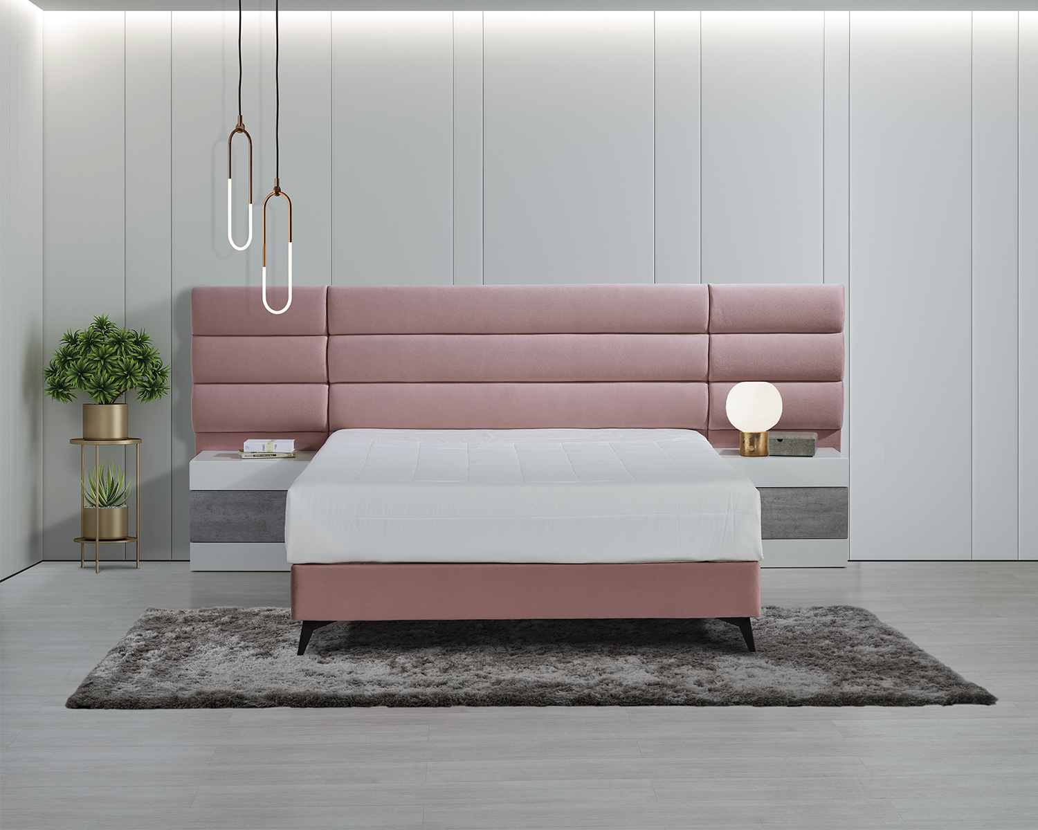 Constituída por três elegantes gomos horizontais, a cabeceira Jones destaca-se sobretudo por exceder os limites da cama, com espaço suficiente para integrar as mesas-de-cabeceira numa mesma superfície de fundo. Possibilidade de produção com ou sem laterais.