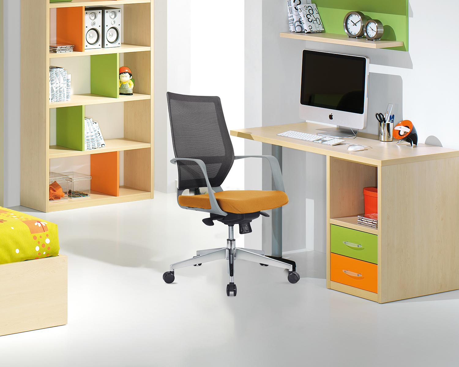 Confortável, funcional e bonita, a cadeira Faro apresenta-se com costas pretas em rede e uma variedade de cores possíveis para o assento. Tem altura regulável e rodízios para maior mobilidade.