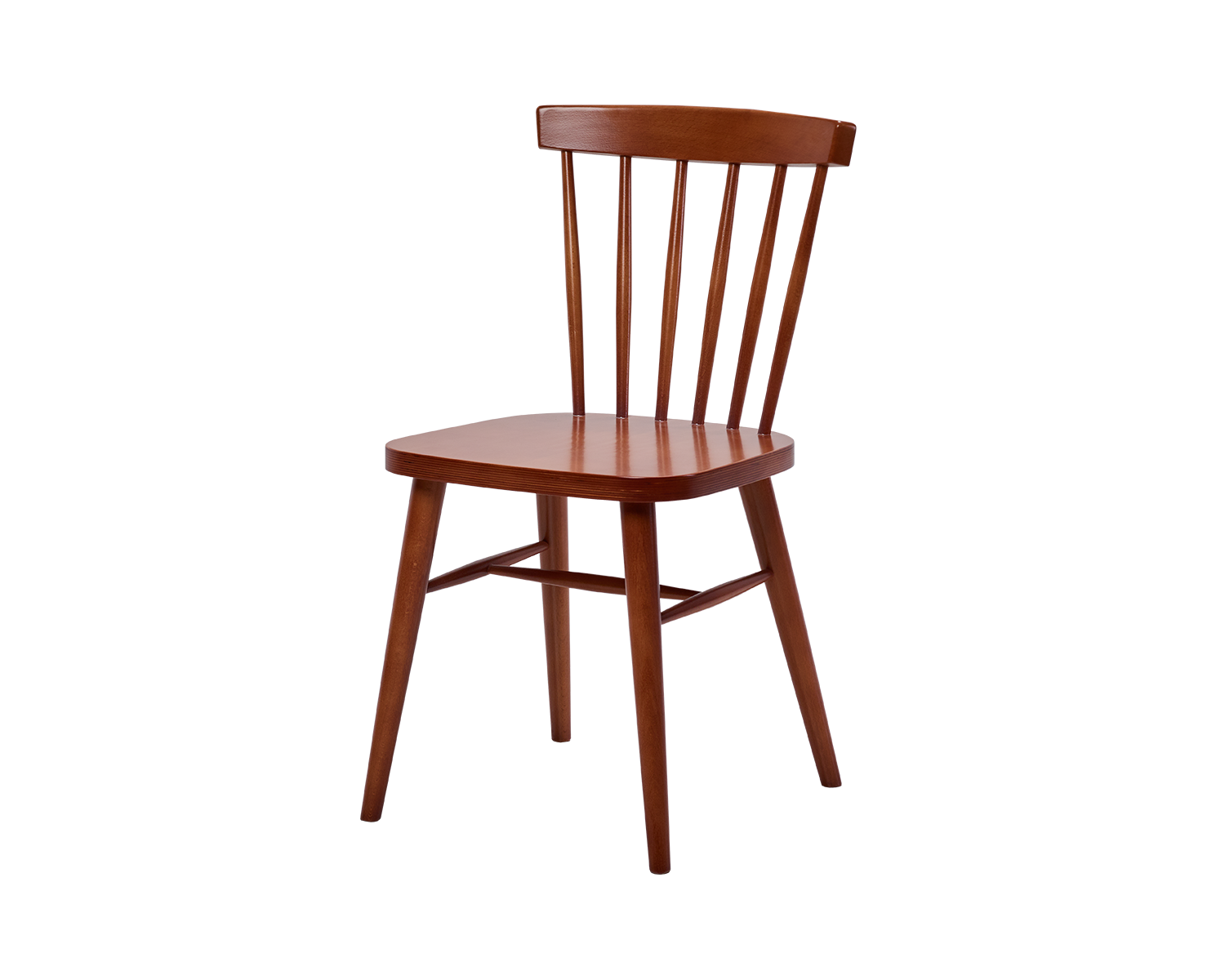 Cadeira para mesa de refeição em madeira. As suas costas altas com travessas verticais reforçam a estrutura e acrescentam conforto.