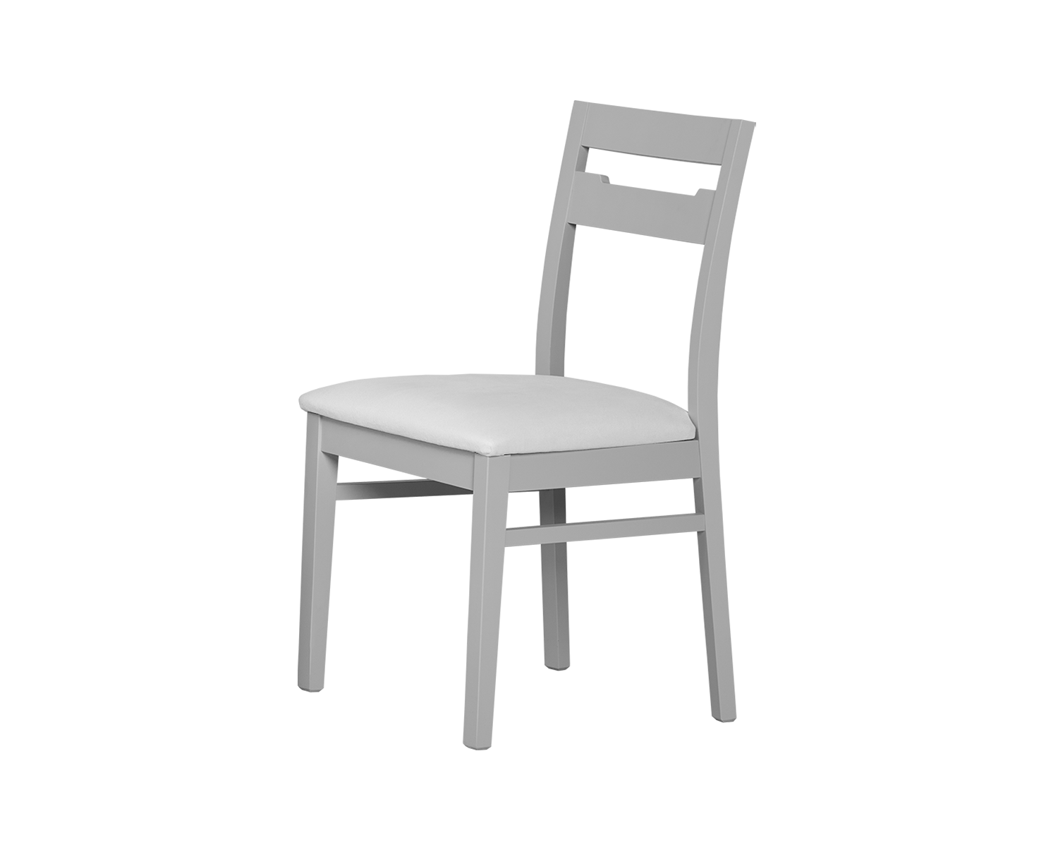 Cadeira idealizada para acompanhar a mesa de jantar da mesma gama. Com assento estofado e estrutura em madeira com travessa decorativa nas costas. Com várias opções de tecido e acabamentos em madeira.