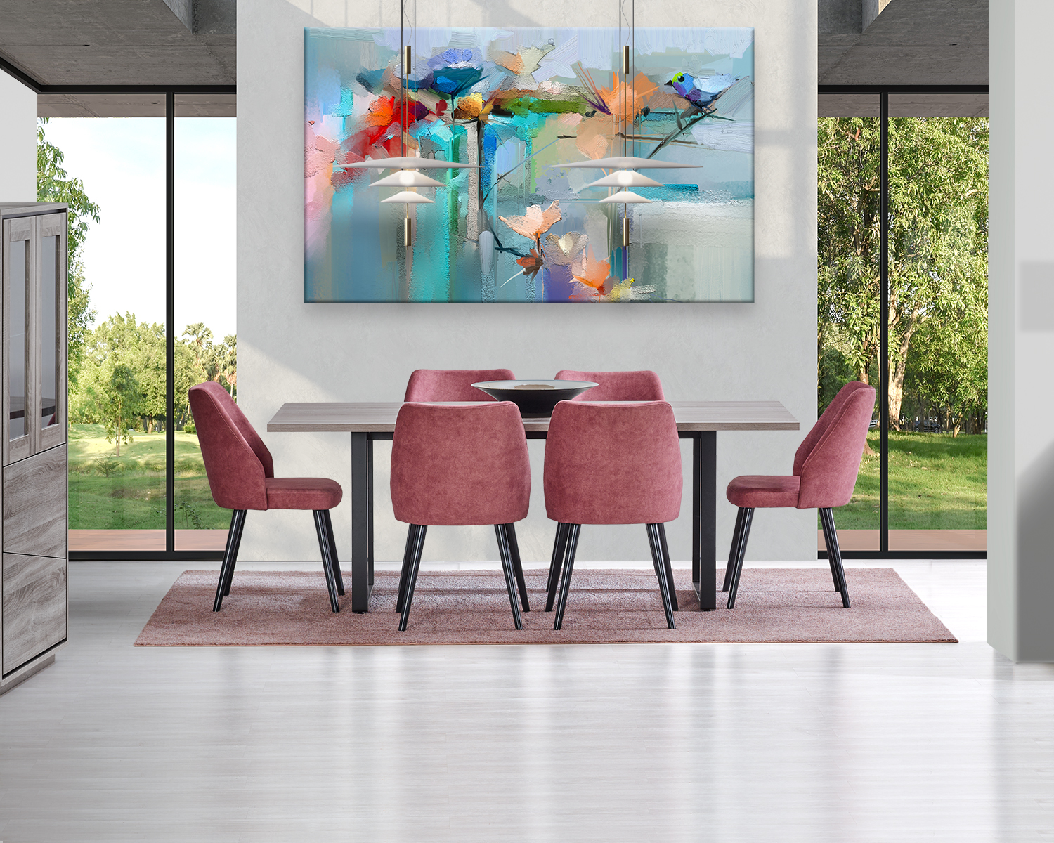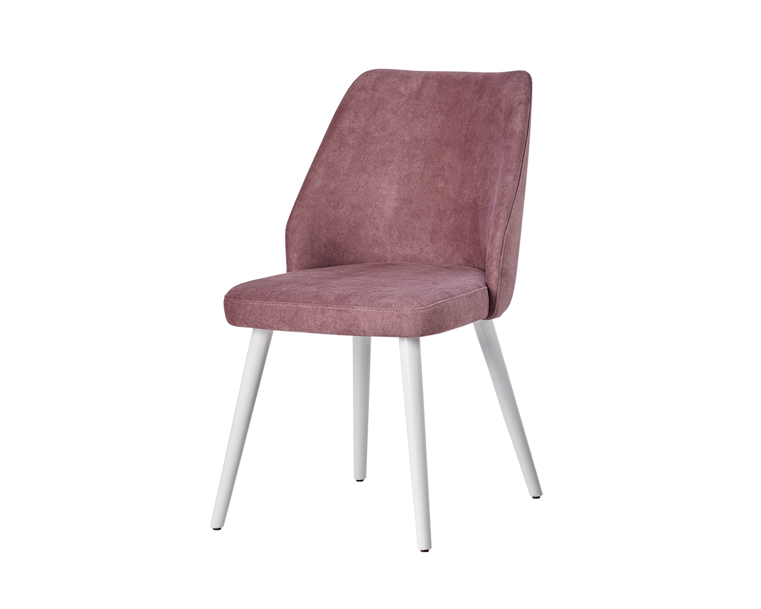 Cadeira para sala de jantar, com estofo no assento e nas costas, arredondadas e envolventes, para maior conforto. Várias opções de tecido e acabamentos em madeira para as pernas.