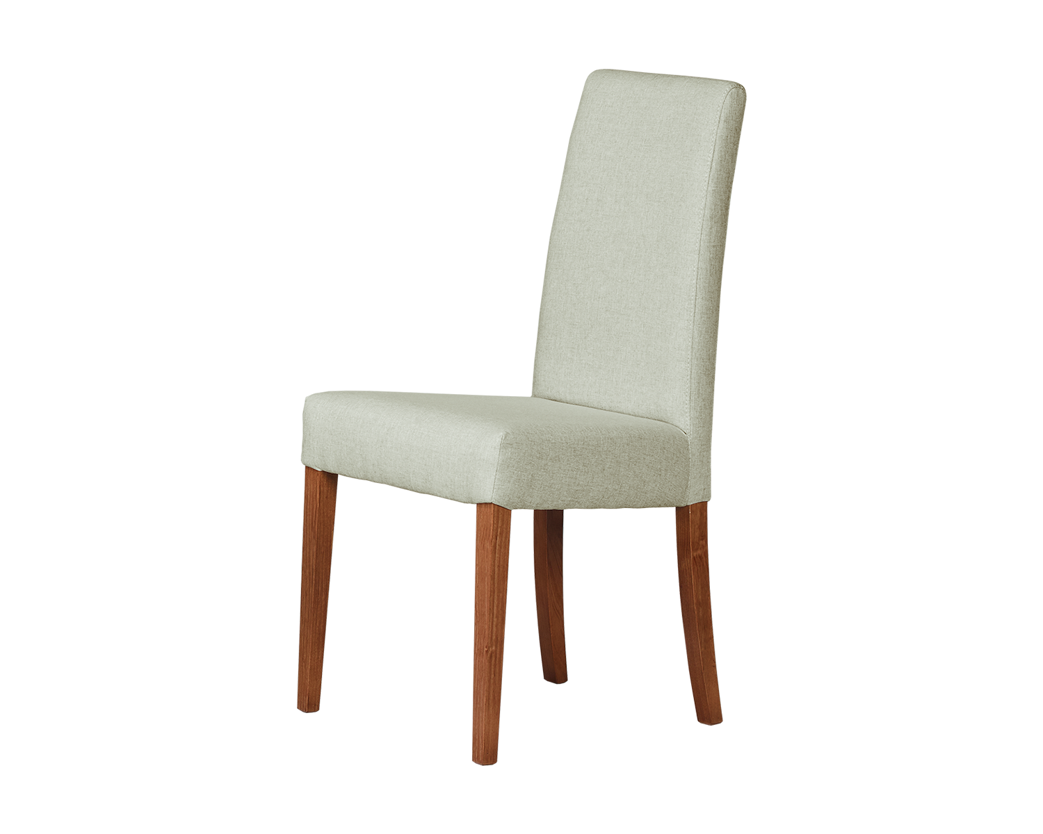 Cadeira para sala de jantar com assento e costas estofadas. Elegante, robusta e confortável, apresenta várias opções de tecido e acabamentos em madeira para as pernas.