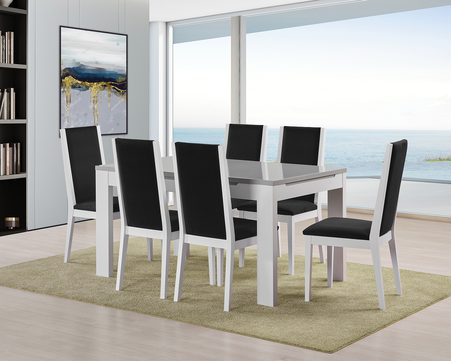 Cadeira para sala de jantar com assento estofado e costas estofadas com estrutura de rebordo e pernas em madeira. Elegante e confortável, apresenta várias opções de tecido e acabamentos em madeira.