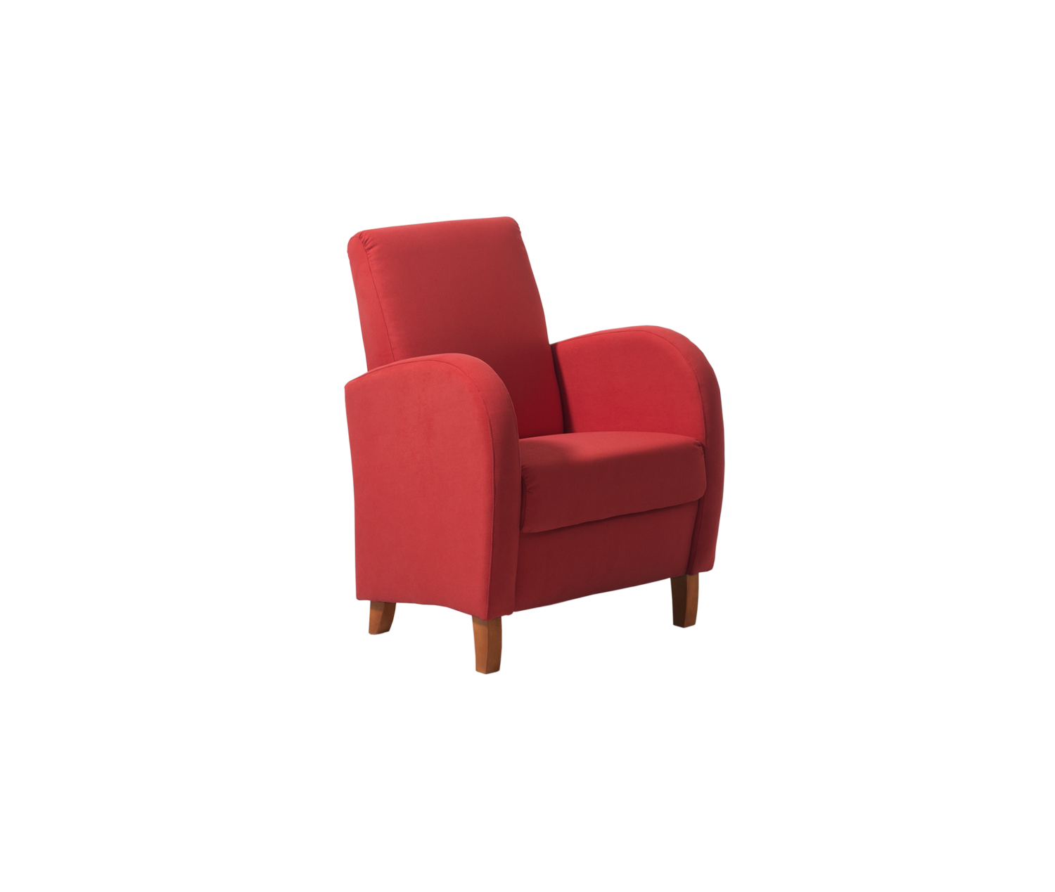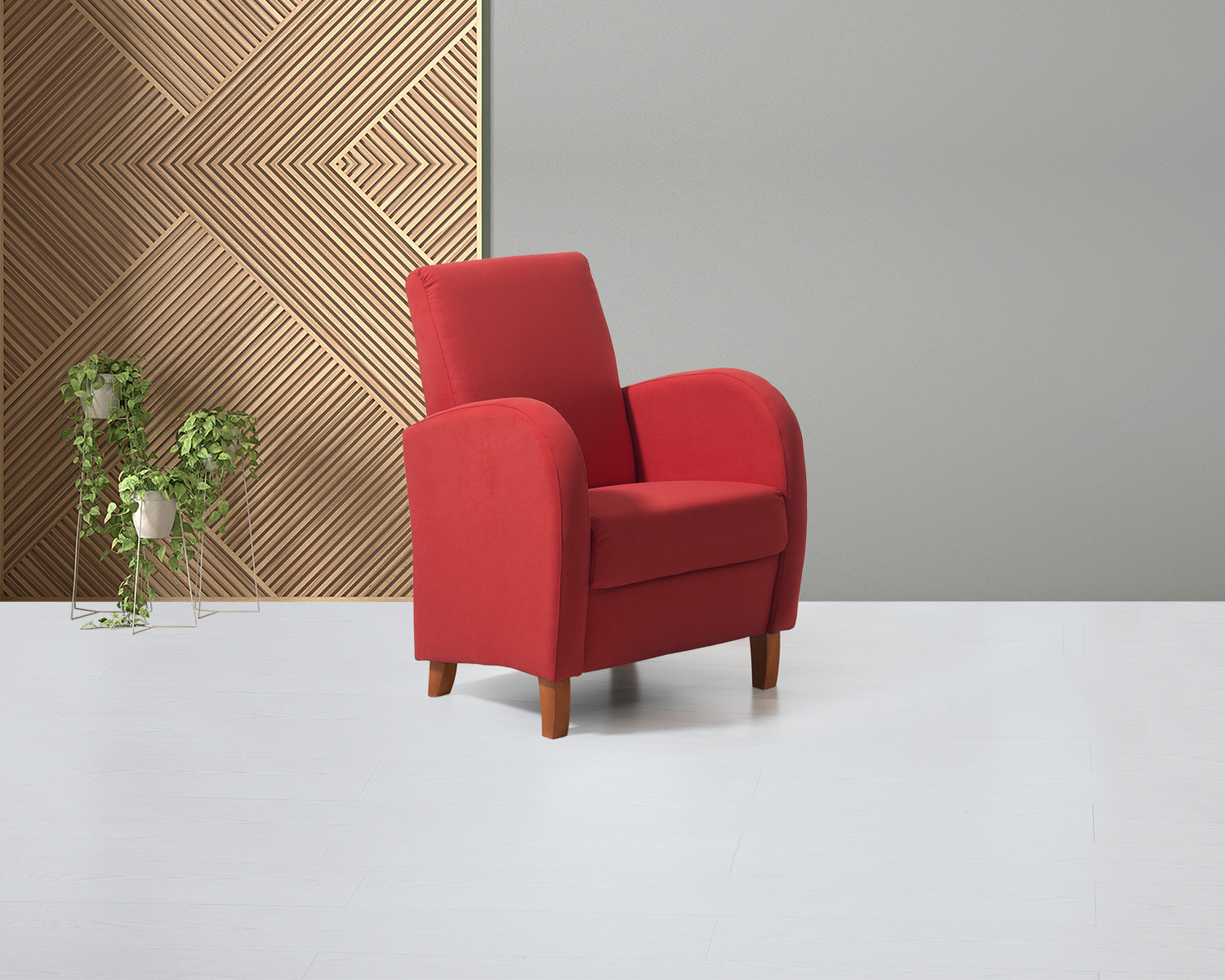 Um cadeirão de linhas simples que se adapta à decoração da sua sala de estar ou quarto, proporcionando um acréscimo de conforto. Disponível em tecido. Pés disponíveis em wengué e cerejeira.