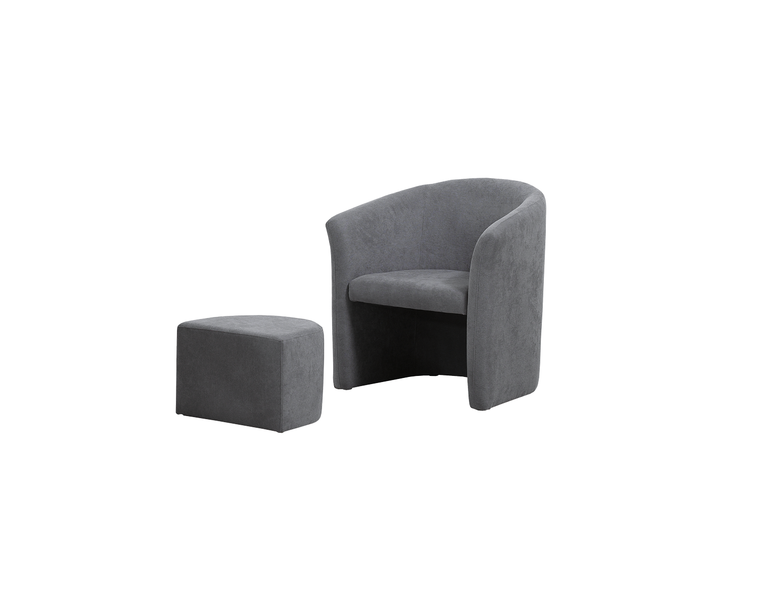 Cadeirão estofado com puff incluído.