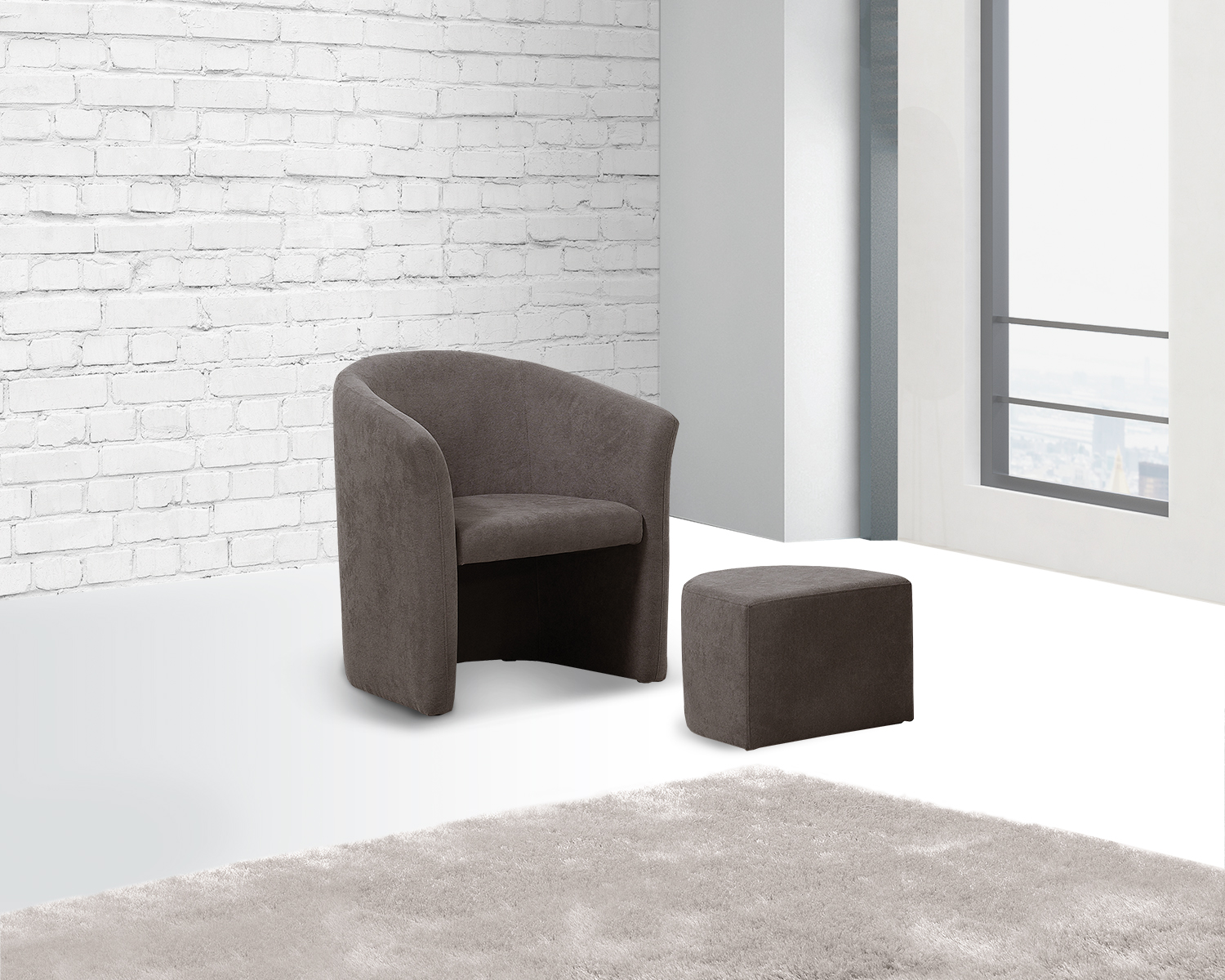 A peça ideal de conforto para a sua sala de estar ou quarto. De linhas simples, esconde debaixo do assento um puff que pode também ser utilizado como repousa-pés. Disponível em tecido.