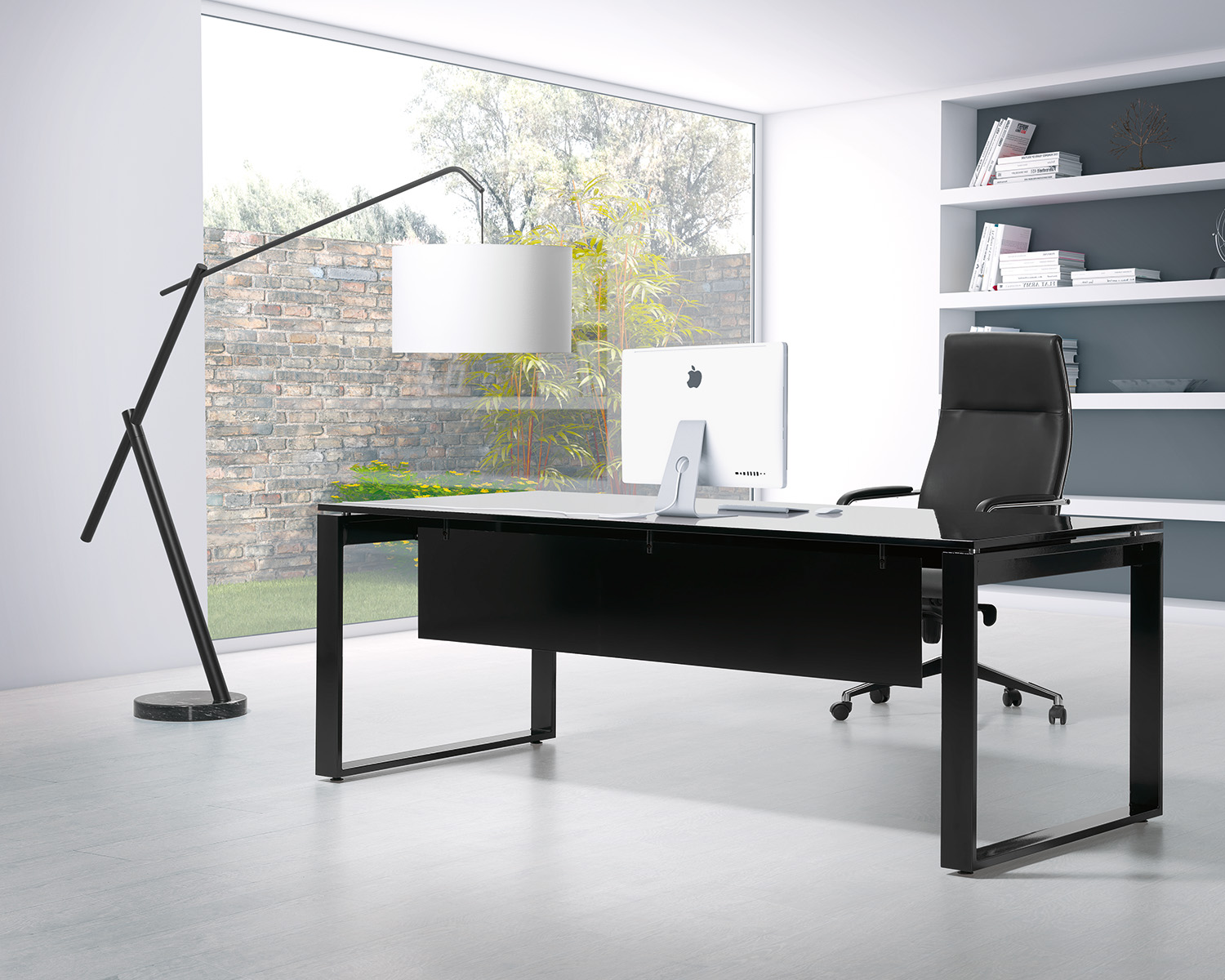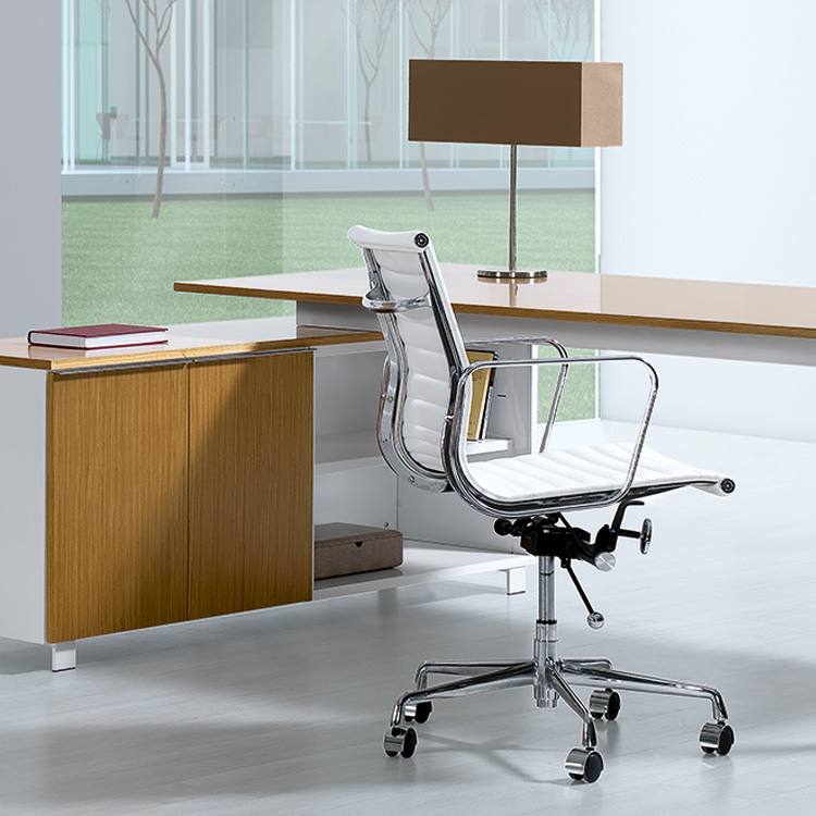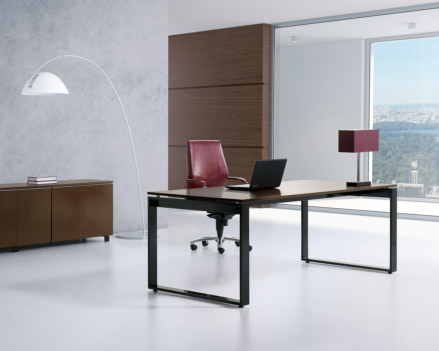 Secretária de linhas direitas, num modelo exclusivo que pontuará qualquer escritório de elegância. Disponível em diversos acabamentos da estrutura e tampo.
