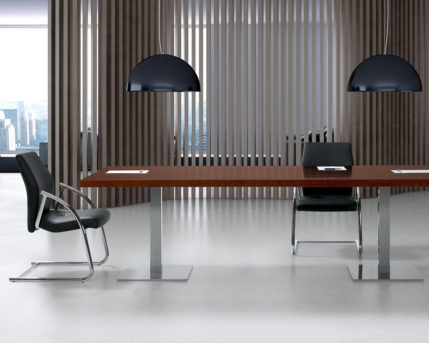Mesa de linhas direitas, num modelo exclusivo que pontuará qualquer escritório de elegância. Disponível em diversos acabamentos da estrutura e tampo.