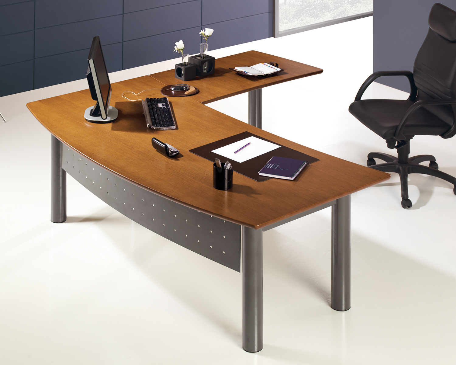 Secretária com superfície de trabalho curvilínea