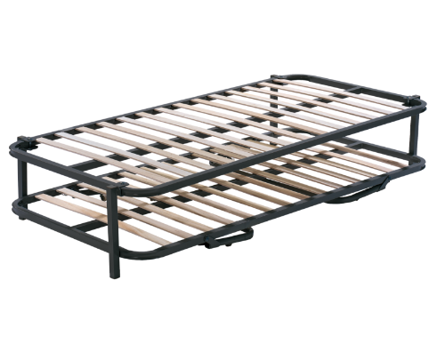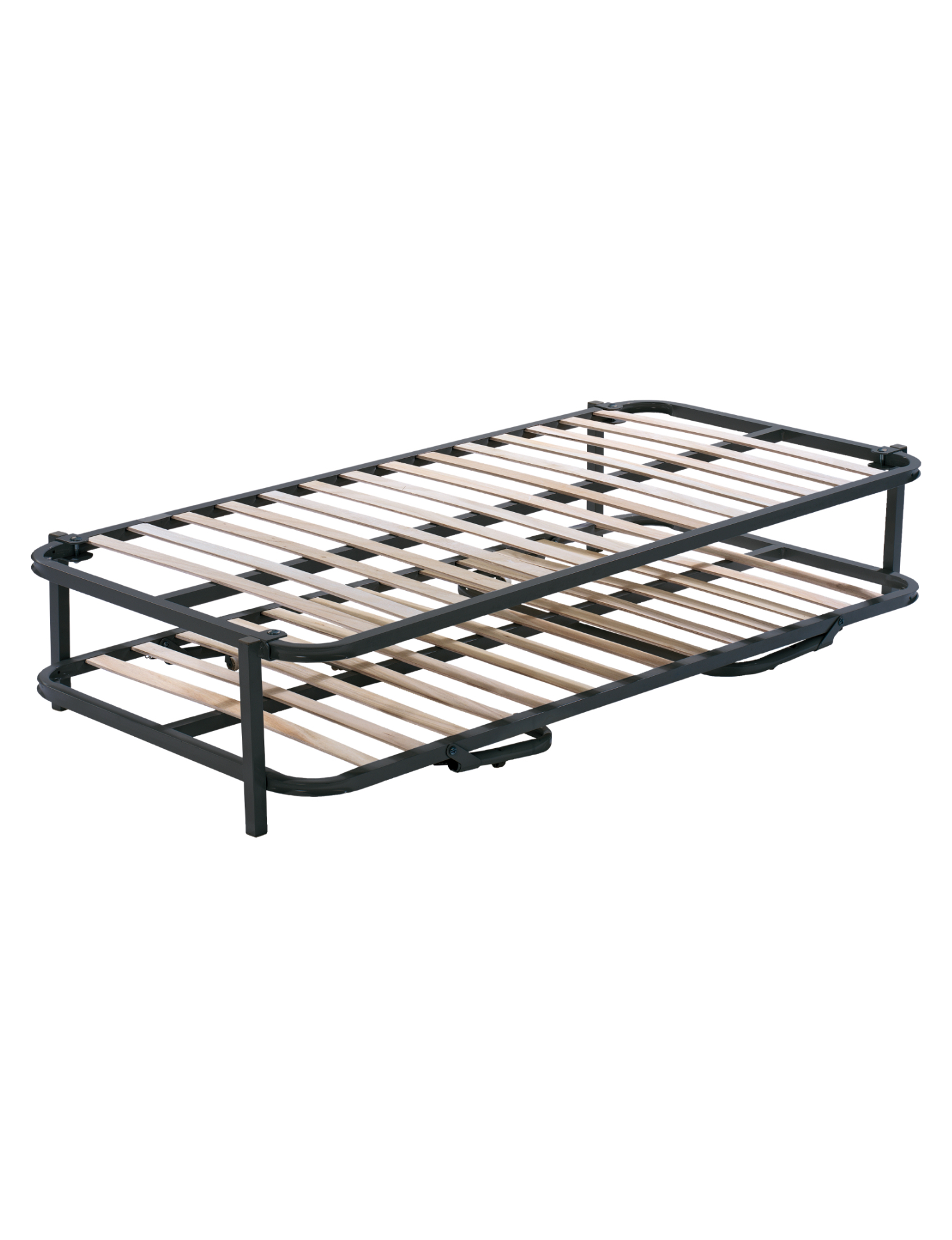 Estrutura em perfil de tubo 30x30x1. Réguas de eucalipto de 5cm. Estrado elevatório, com pés de abertura automática, com rodas deslizantes. Pintura epoxy. Pés opcionais. Consultar medidas disponíveis.