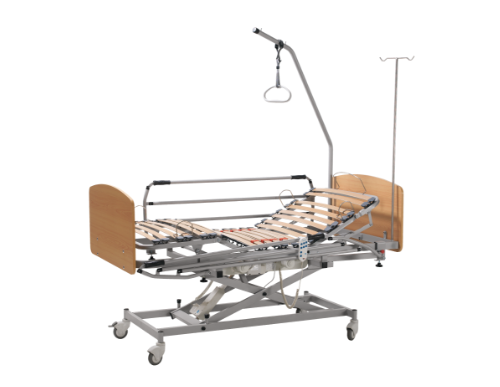 Um único comando regula o motor do estrado, tripartido, e do elevador. A cama Linea Geriatric promove o conforto e segurança dos seus utilizadores e é essencial quando os utilizadores (temporários ou permanentes) dependem da ajuda de um cuidador. Com cabeceira e peseira em painel de madeira simples.
