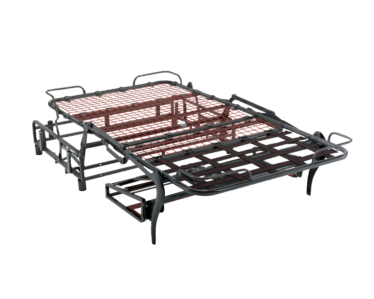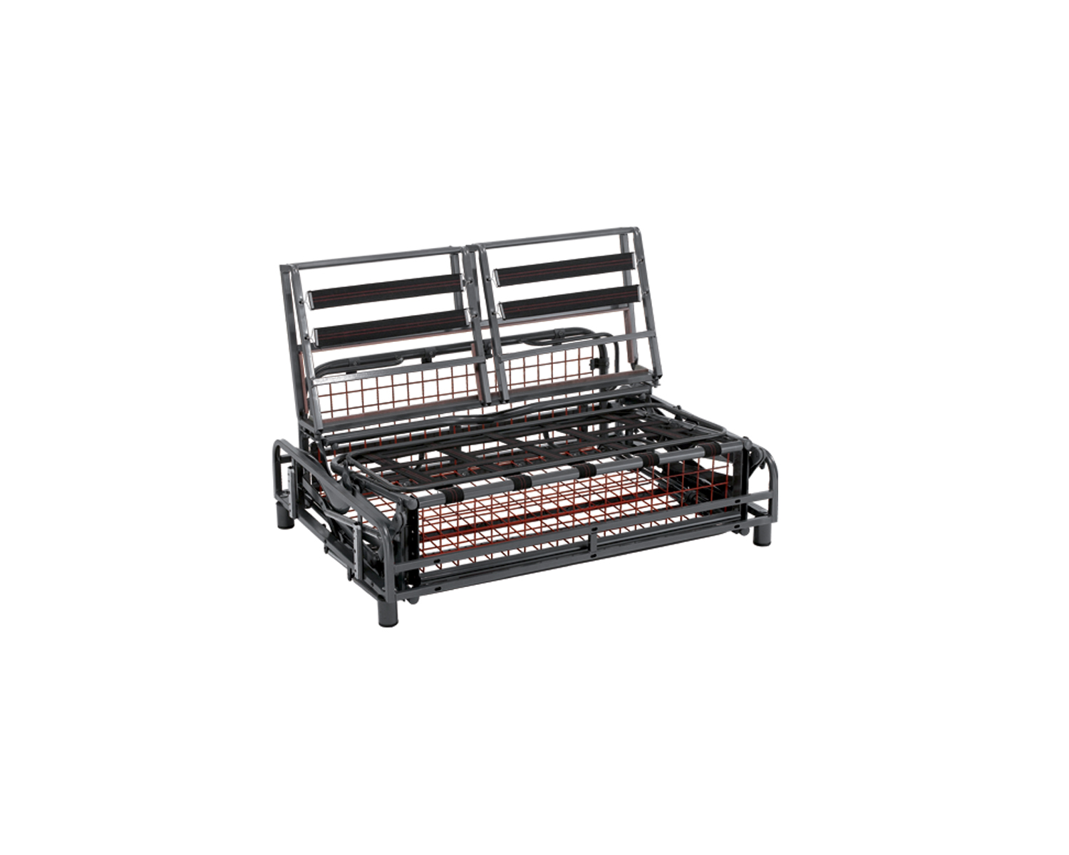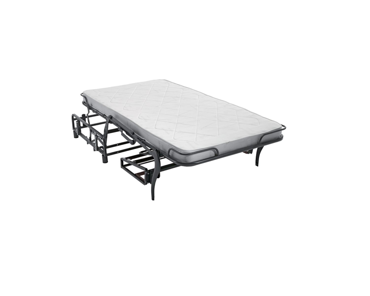 Mecanismo desdobrável para sofá cama, com estrutura de fácil encaixe dos braços do sofá e compatível com vários modelos de costas.