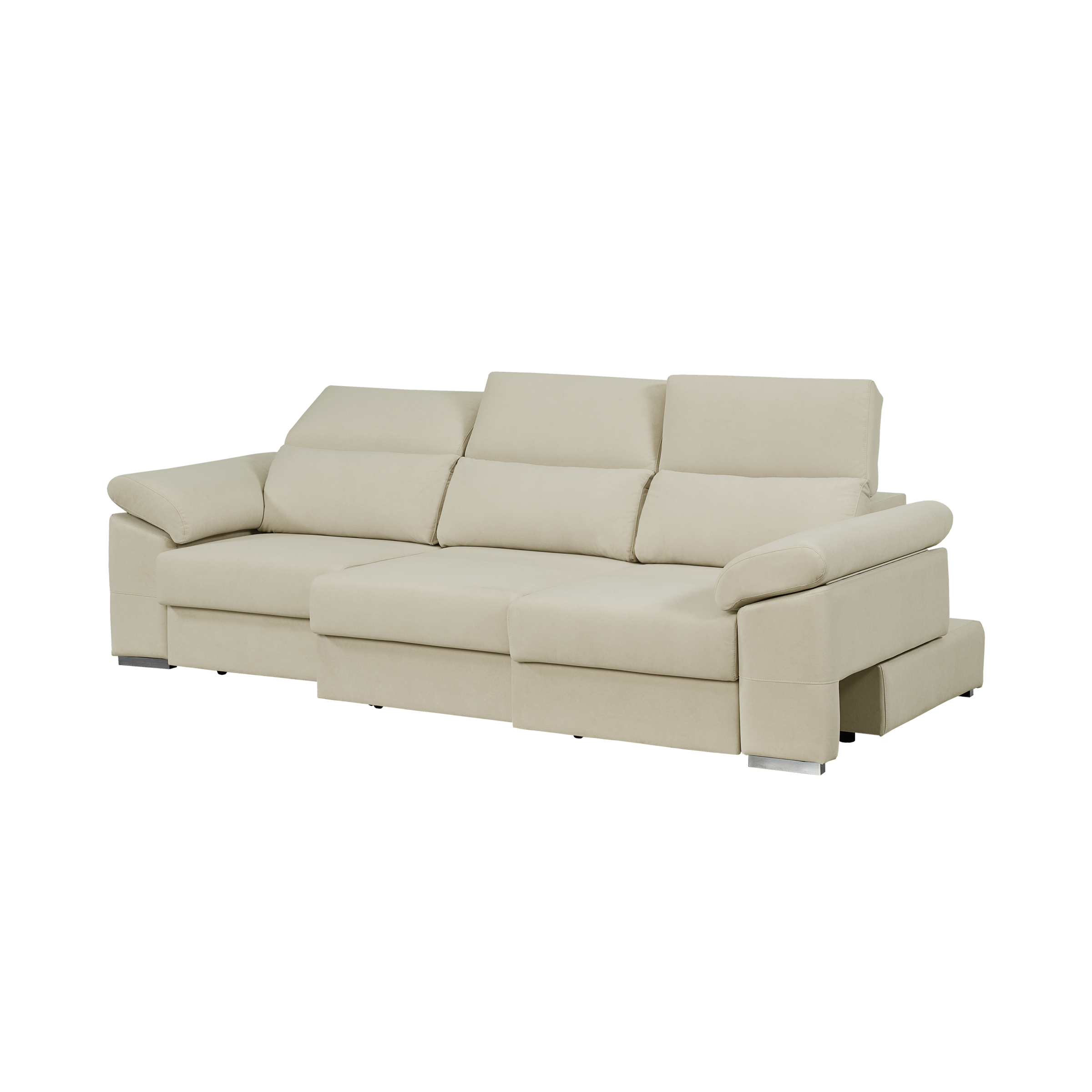 • Assentos e braços deslizantes, permitem transformar-se em chaise ou numa cama.