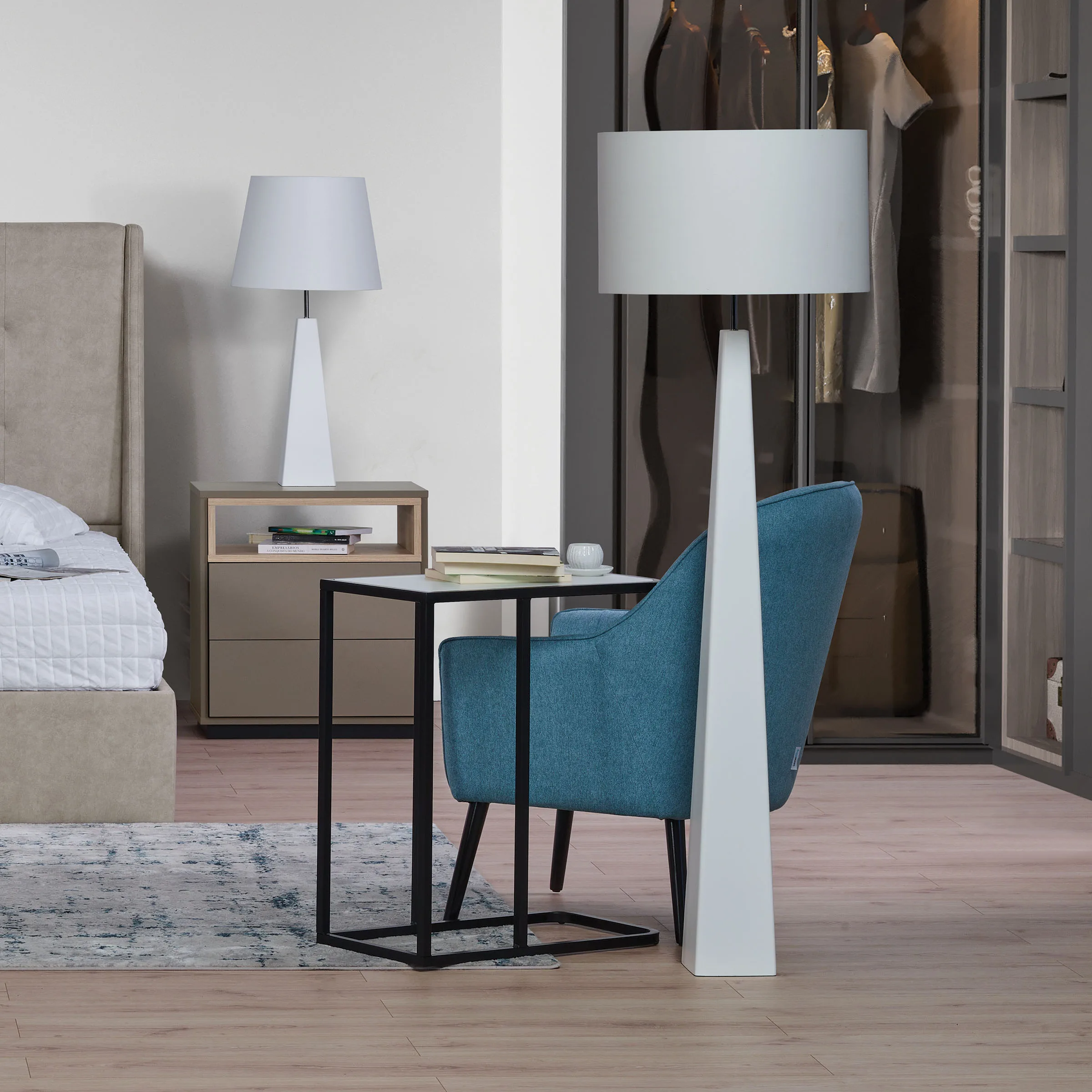 • Mesa de apoio lateral com um design que é um mix de estabilidade e beleza.
