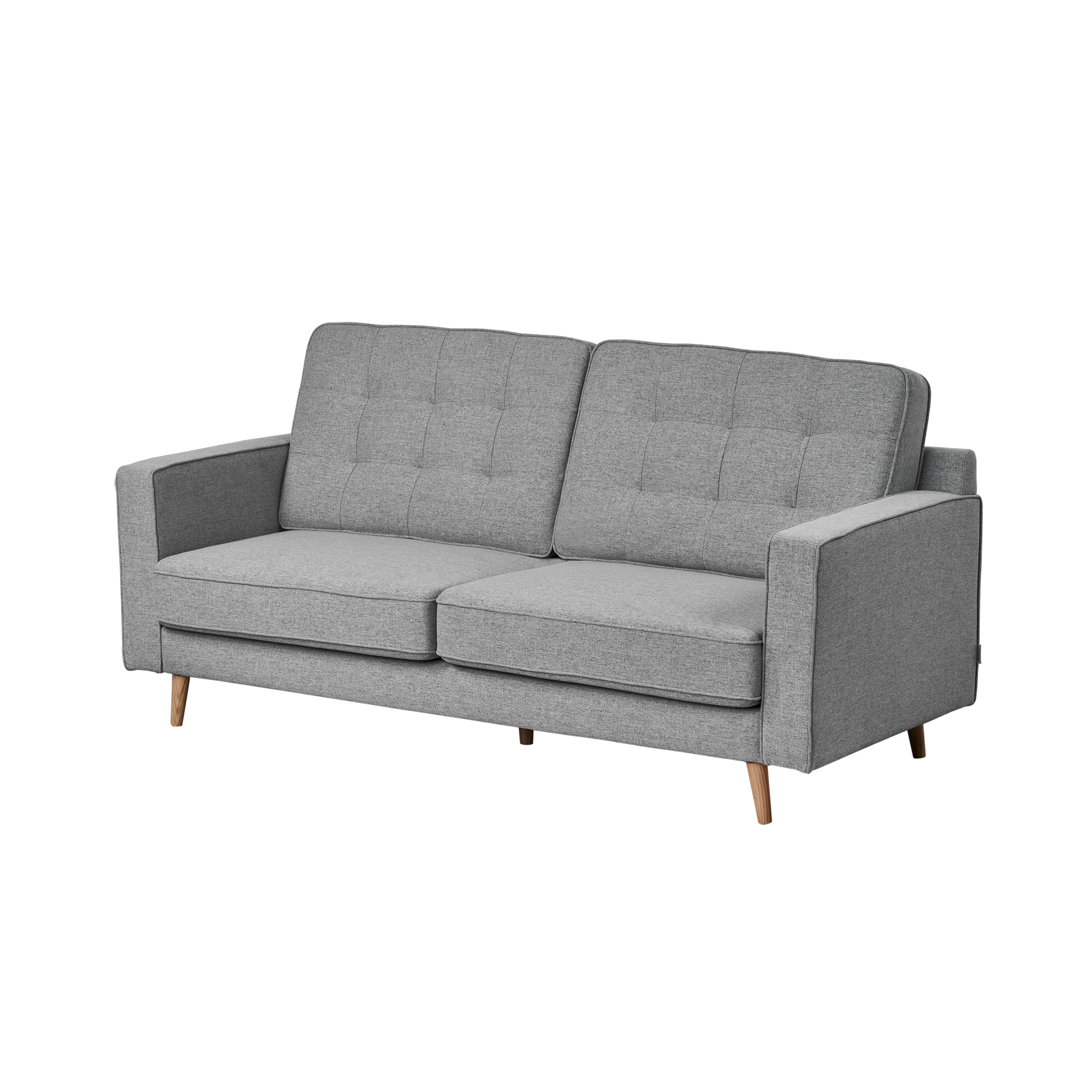 Sofá de 2 ou 3 lugares com almofadas soltas e pés cónicos de madeira