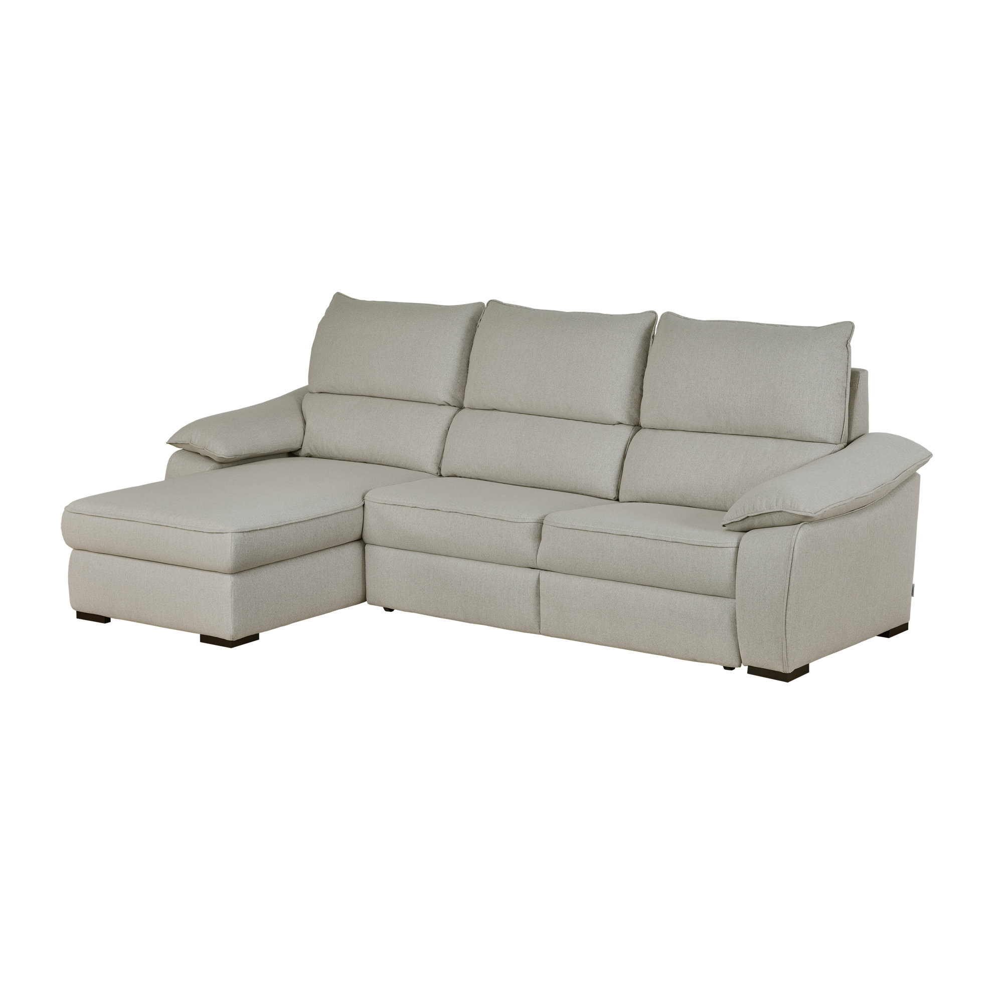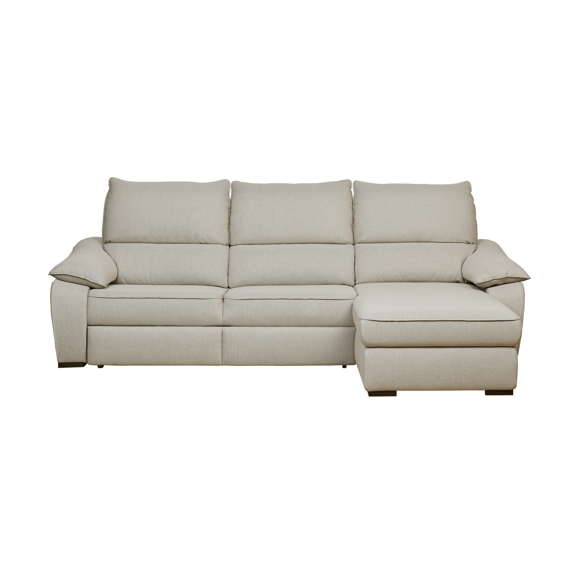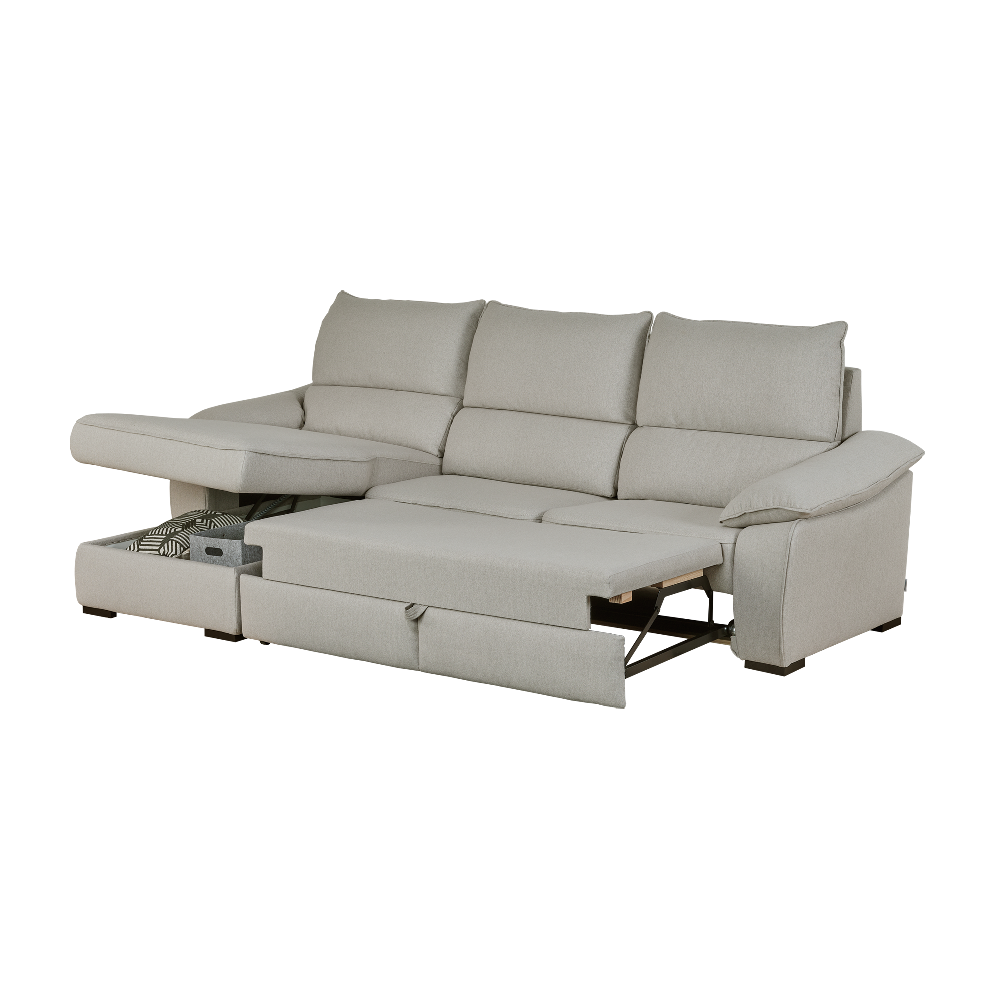 Sofá de 3 lugares com cama elevatória e chaise longue reversível com baú