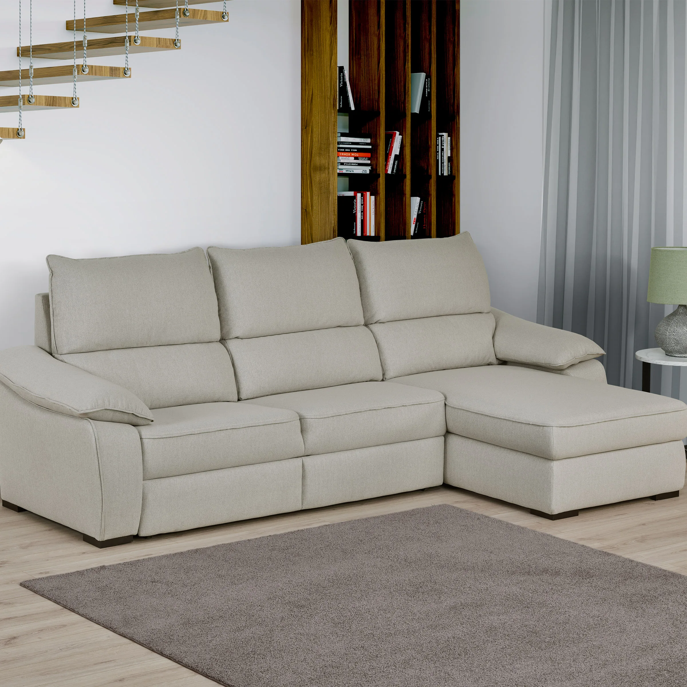• Sofá superconfortável, com chaise longue reversível, baú de arrumação e cama elevatória.