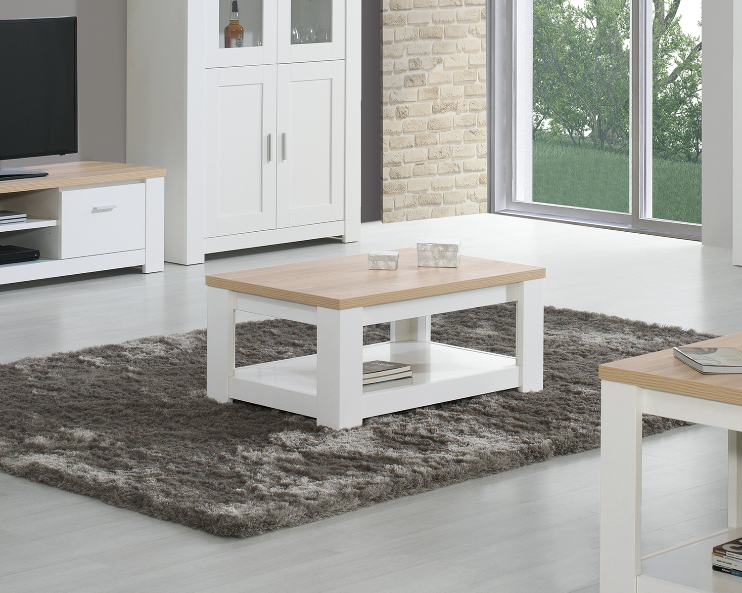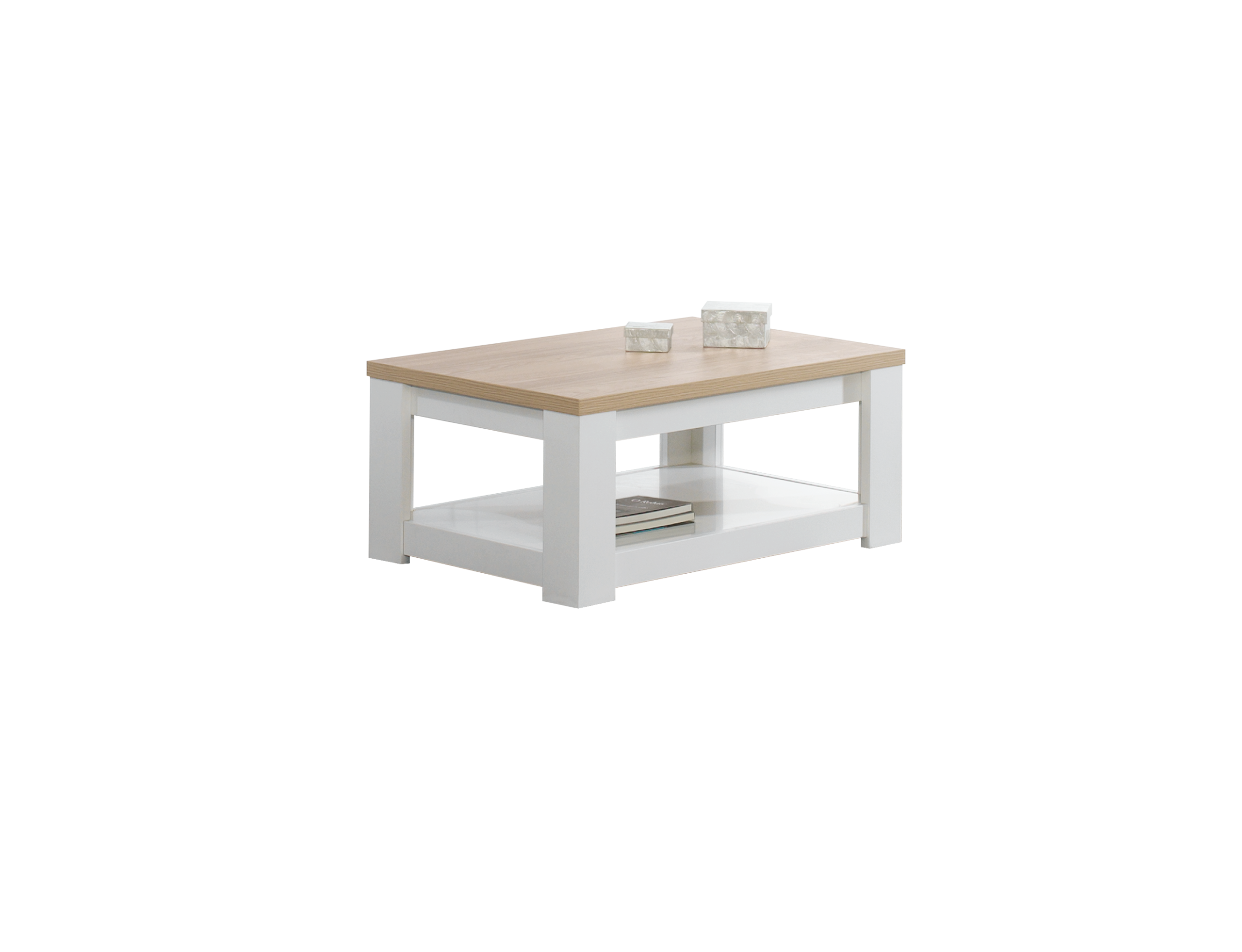 Para além do seu carácter estético, a mesa de centro completa a decoração da sua sala de estar, aliando na perfeição o design e a funcionalidade. As linhas retas e contemporâneas, que conjugam o branco com a folha de carvalho, ajudam a criar um ambiente elegante.