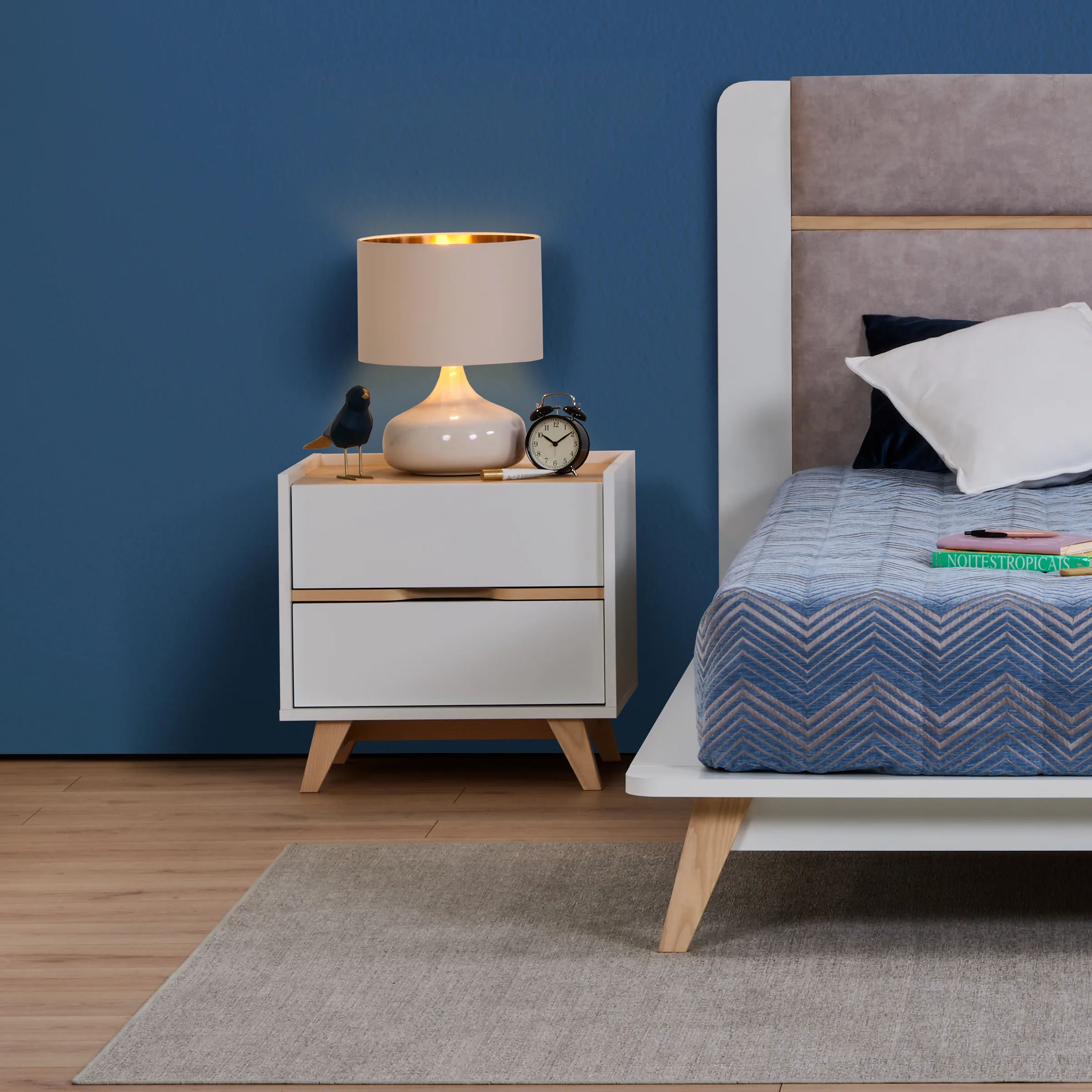 - O design nórdico faz desta peça a aposta segura para completar a decoração de um quarto com ambiente tranquilo e organizado.