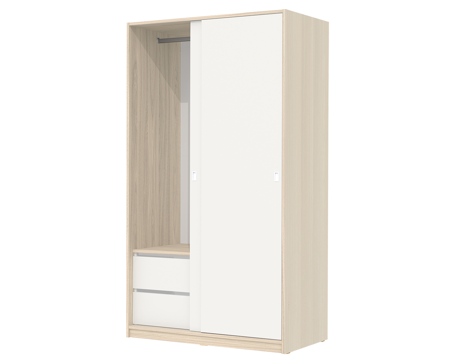 A combinação do melhor estilo com a organização prática para a sua roupa. Roupeiro de 2 portas deslizantes, de linhas simples, portas brancas e laterais em carvalho natural, pode ser conjugado com a restante coleção de quarto Paris, ou com outras peças de mobiliário.