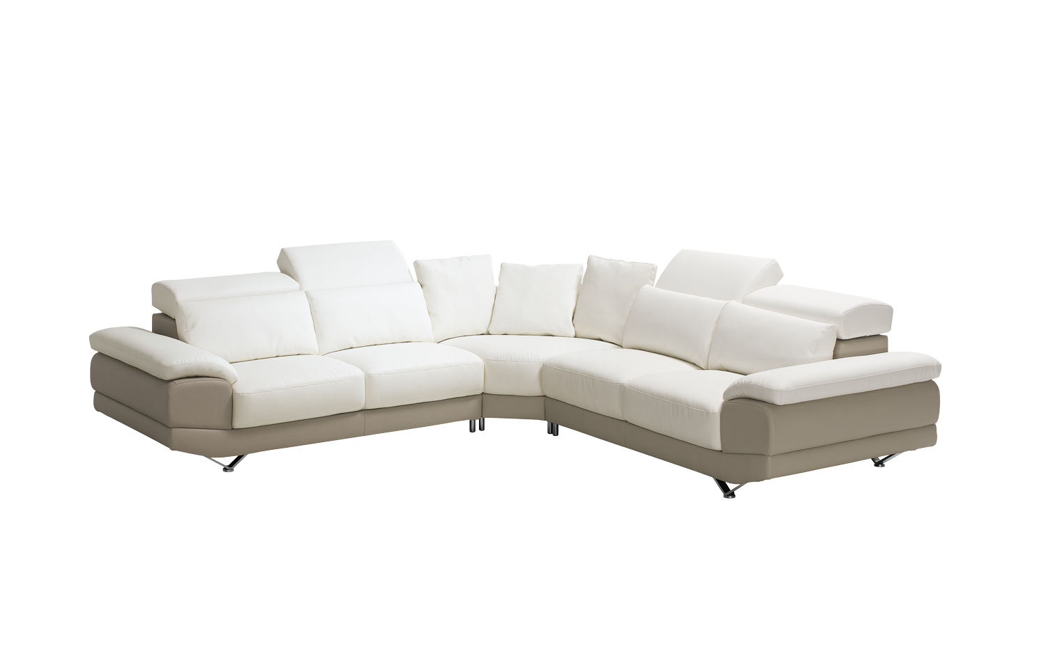 Um modelo generoso e confortável que lhe permite otimizar o espaço da sala sem abrir mão da decoração. Sofá de canto com costas reclináveis. Pés de metal e revestimento em tecido ou em pele. Tecido personalizável. De acordo com a opção de tecido escolhida existem diferentes tipos de tratamentos, como water repellent, easy clean, aquaclean, resistente ao fogo e a riscos, para aumentar a longevidade do seu sofá.